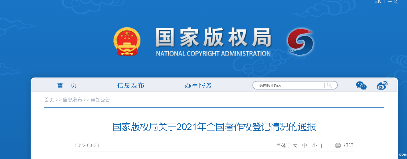 国家版权局关于2021年全国著作权登记情况的通报